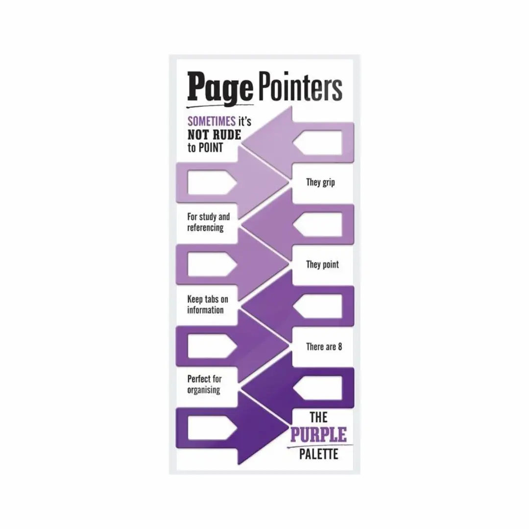 Coordinated shades of purple pointing arrows, perfect for marking and organising important bits of information in books and notebooks.
