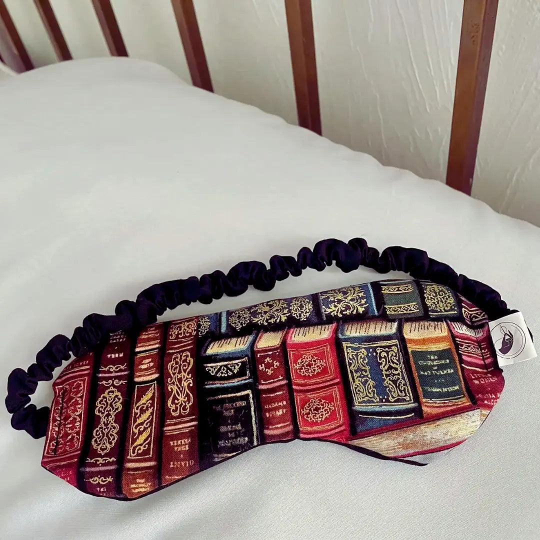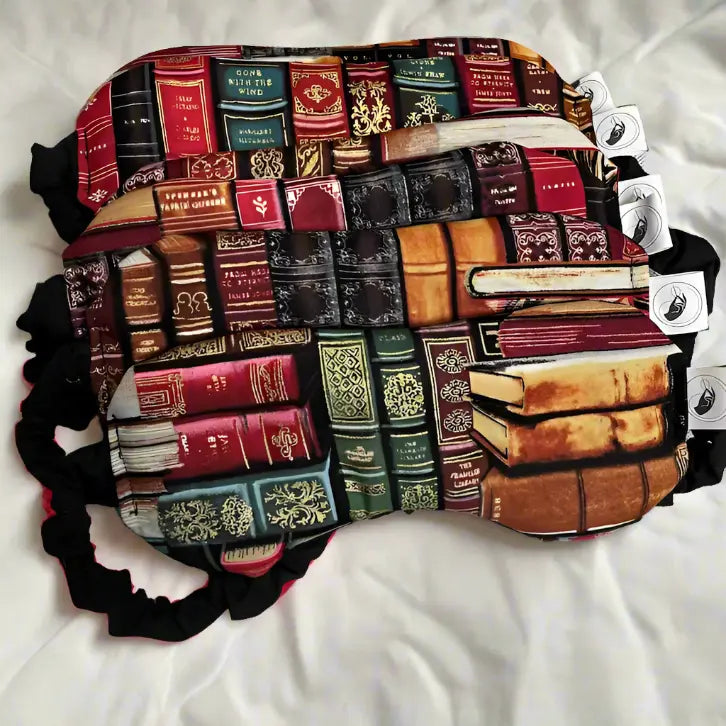 The super-soft, luxurious fabric features a beautifully detailed vintage books pattern, cut uniquely to each individual mask.